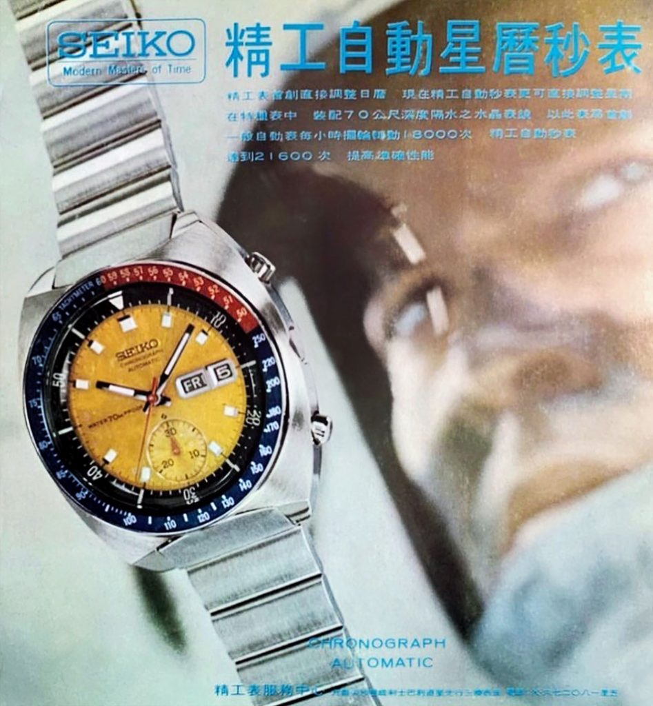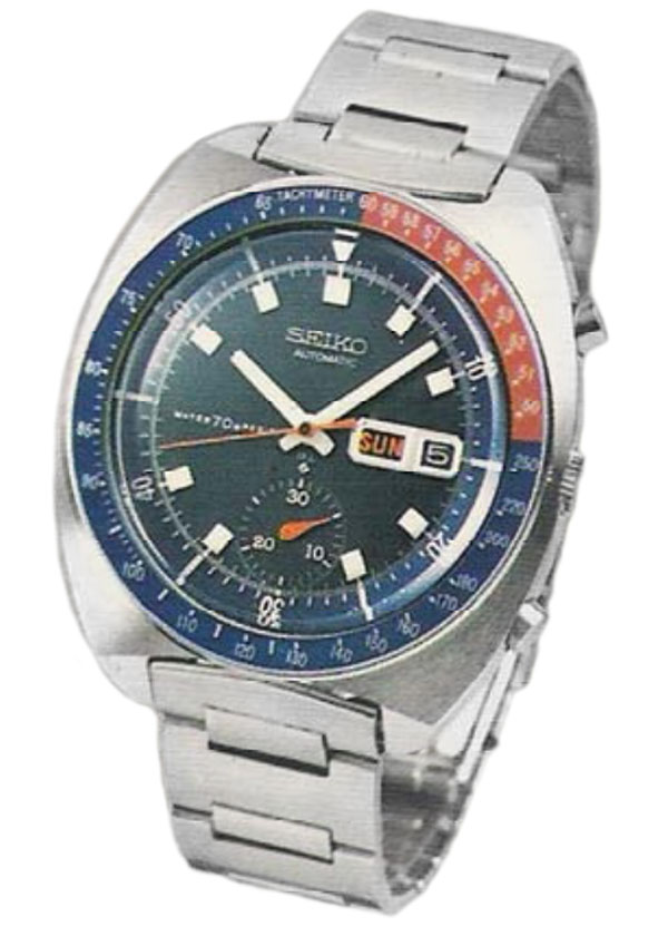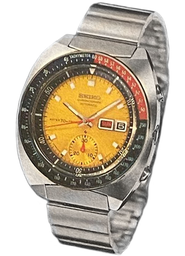 In the spring of 1969 Seiko introduced the 5 Sports Speed Timer to the Japanese domestic market. It was the world’s first self-winding chronograph. The revolutionary 6139A automatic movement featured a vertical clutch system and a column wheel.