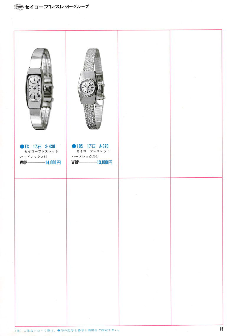 In the Seiko Catalog Supplement of 1969 we see for the first time a variety of Grand Seiko watches presented with stainless steel bracelets.