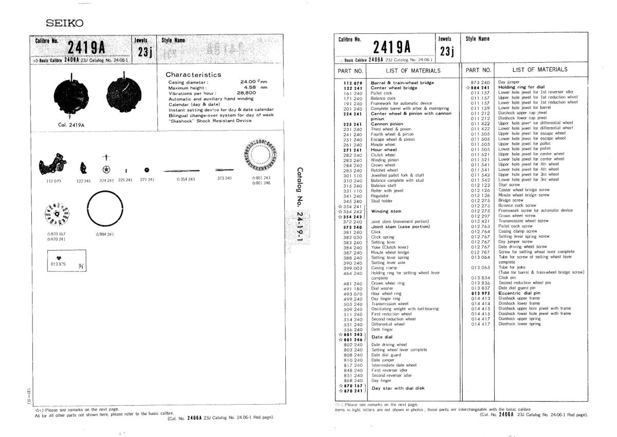 Seiko Caliber 2419 Technical informationWatches with the 2419 movementAt the moment we do not have information on watches with this movement.