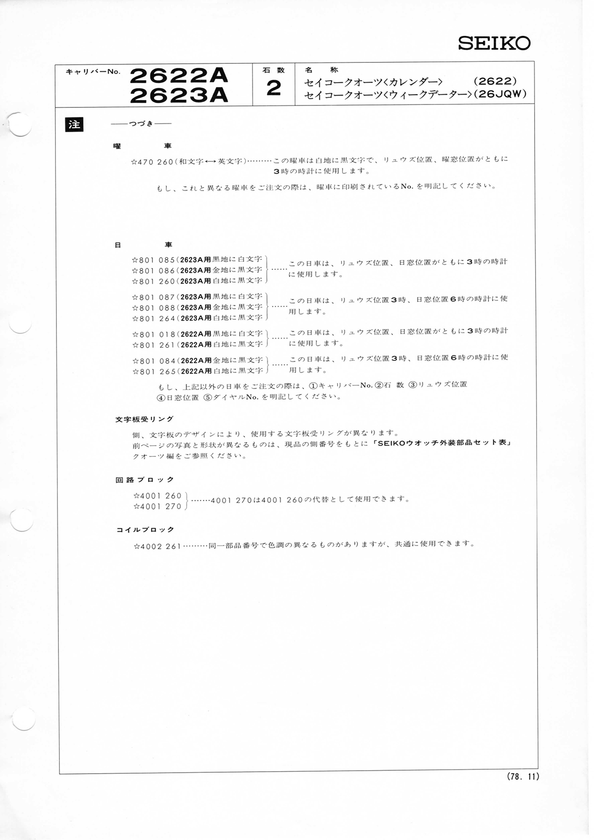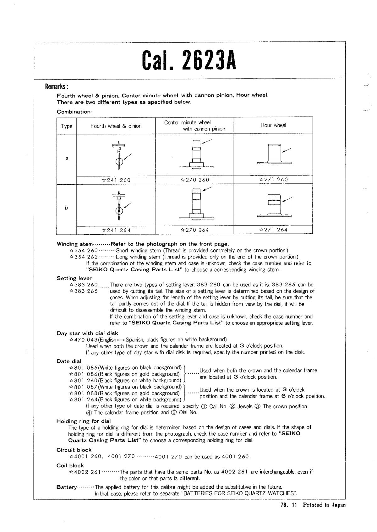 Seiko Caliber 2623 Technical information (Japan)Technical information (World)Watches with the 2623 movementAt the moment we do not have information on watches with this movement.