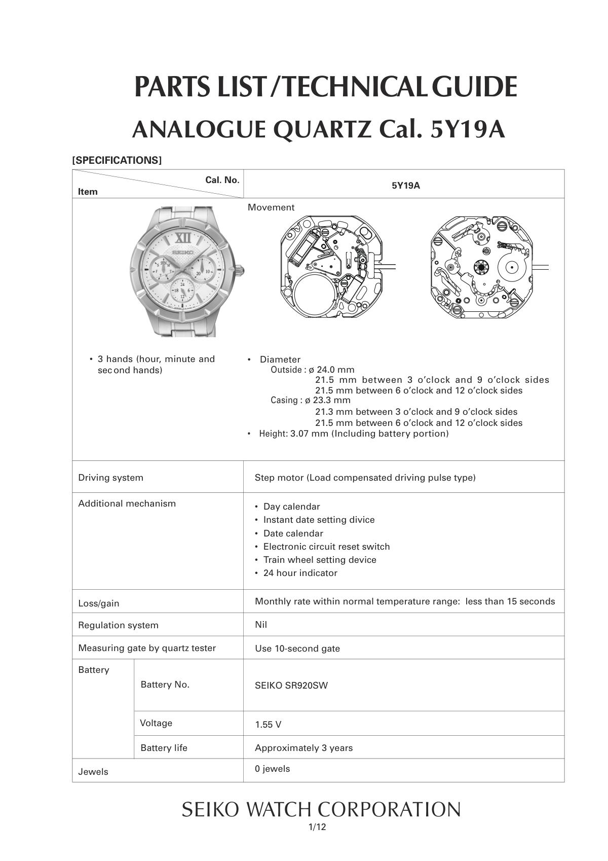 Seiko Caliber 5Y19 Technical informationWatches with the 5Y19 movement5Y19-0AA05Y19-0AC05Y19-0AD05Y19-0AE0